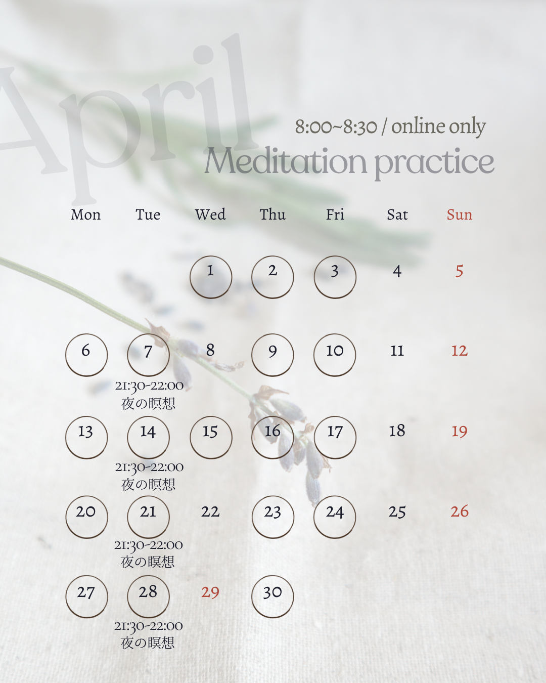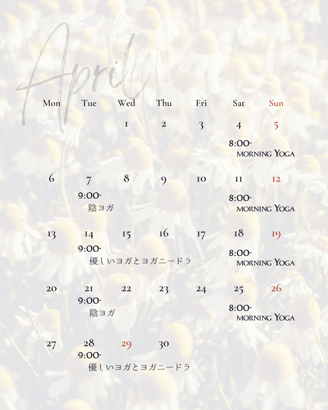 今月も皆さんとのヨガの時間を楽しみにしております。